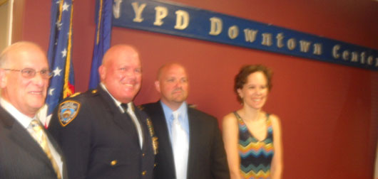 The 1st Precinct Scooter Task Force and the Downtown Alliance Security Division moved to new offices at 65 Broadway this week. Patrol Boro Manhattan South Chief Thomas Purtell, 1st Precinct Commanding Officer Captain Edward Winski, Scooter Task Force Commanding Officer Lt. Rob Rudolph were on hand to open the new NYPD Downtown Center.