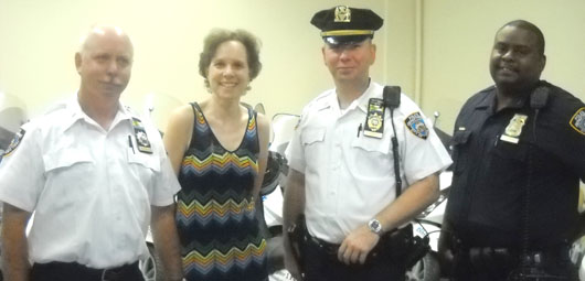Commanding Officer Edward Winski with Lt Rob Rudolph, Liz Berger, President of the Downtown Alliance, and Sgt Harvin of the Scooter Task Force.